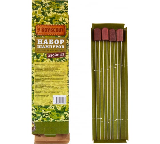 —Набор двойных шампуров BOYSCOUT 38 см с деревянными ручками, 4 шт 61052