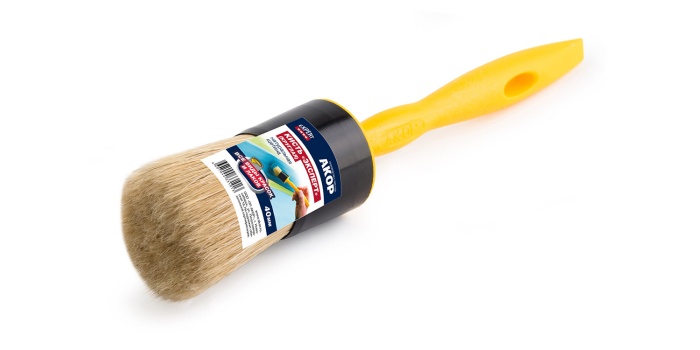 Кисть-ручник «Эксперт», круглая, светлая натуральная щетина, пластиковая ручка.