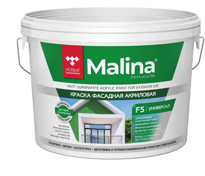 Краска акриловая фасадная предназначена для высококачественной окраски фасадов зданий и сооружений, а также для окраски стен и потолков внутри